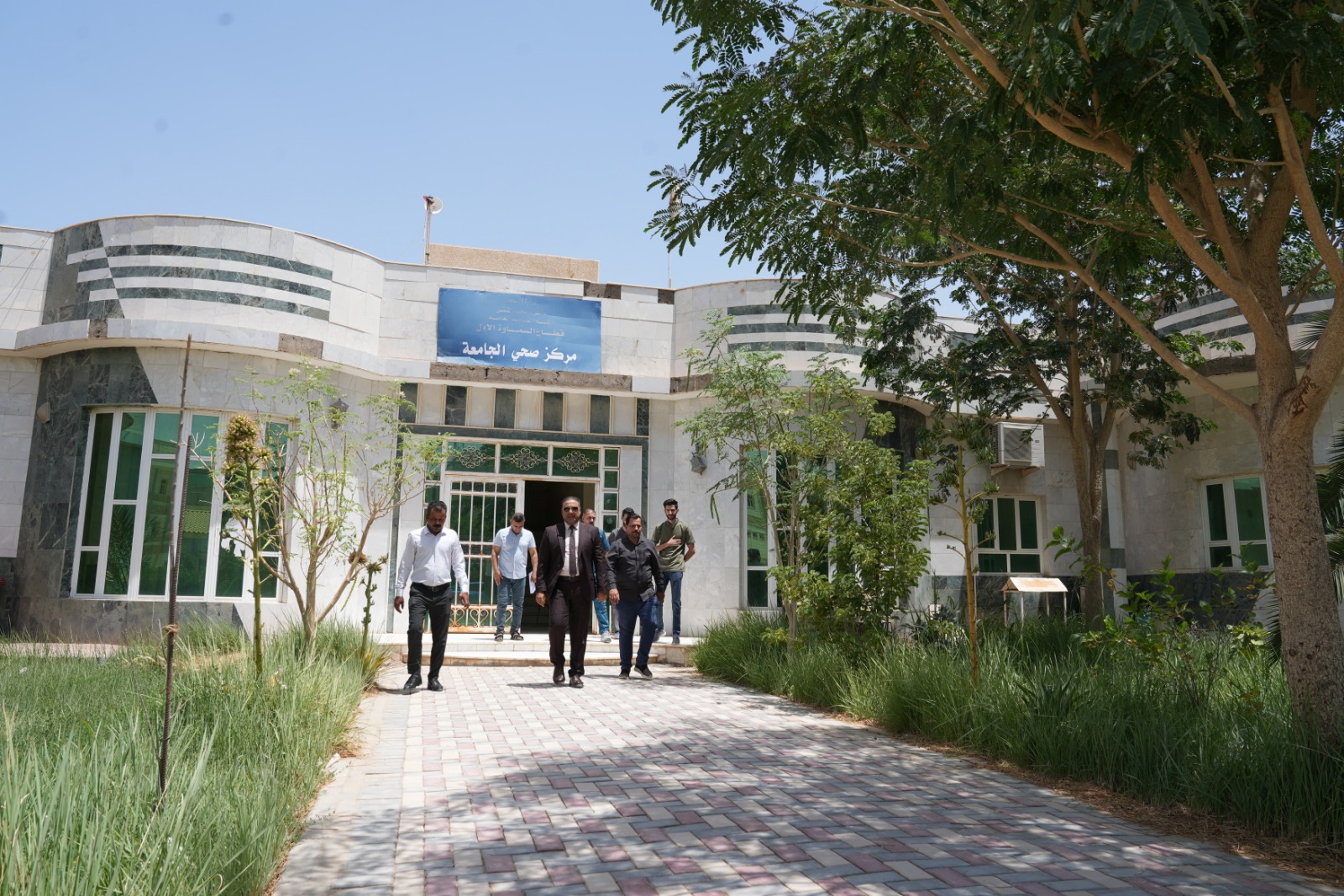 June 22, 2025As part of his ongoing inspection tours, Professor Dr. Hussein Kamel Al-Shaher, President of Al-Muthanna University, visited the University Health Center today to review the workflow and follow up on the health services provided to students and staff. Dr. Al-Shaher toured the various departments of the center, listening to a detailed explanation from the medical and administrative staff regarding the available services, which include medical examinations, first aid, and general medical services . He emphasized the need to continue developing health services and updating medical equipment and devices to ensure the provision of comprehensive and integrated healthcare that meets the needs of the university community.